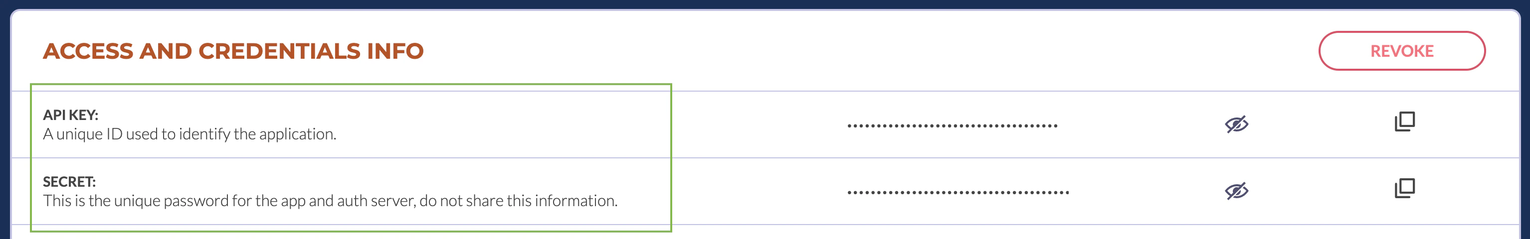 5. Copy your API Key (this is your Client ID) and Secret (this is your Client Secret).