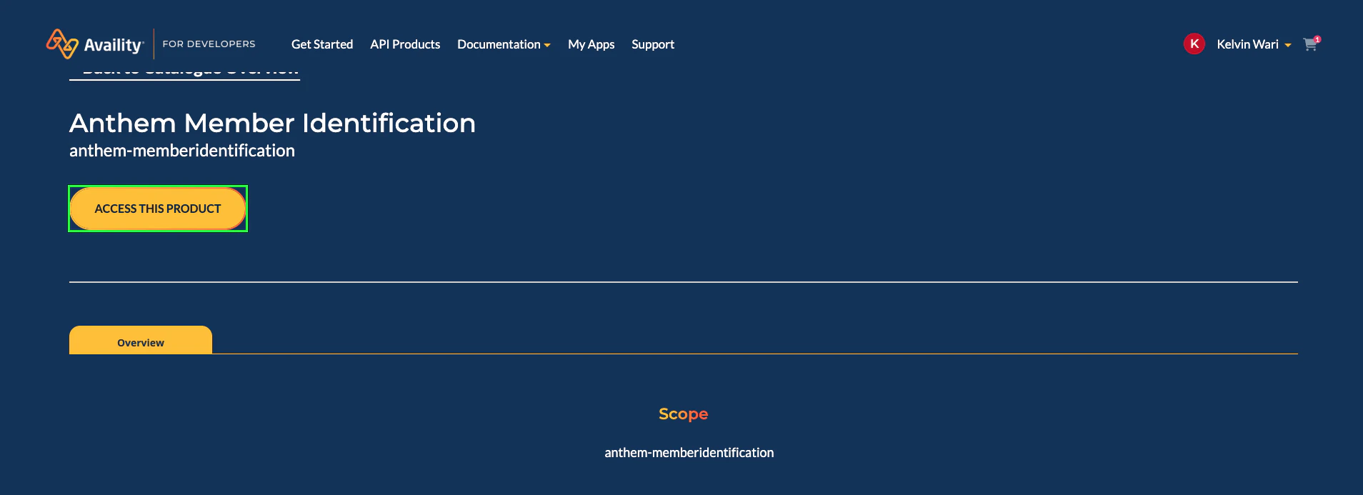 3. Confirm that the API Product you want access to is listed in the selected product area.