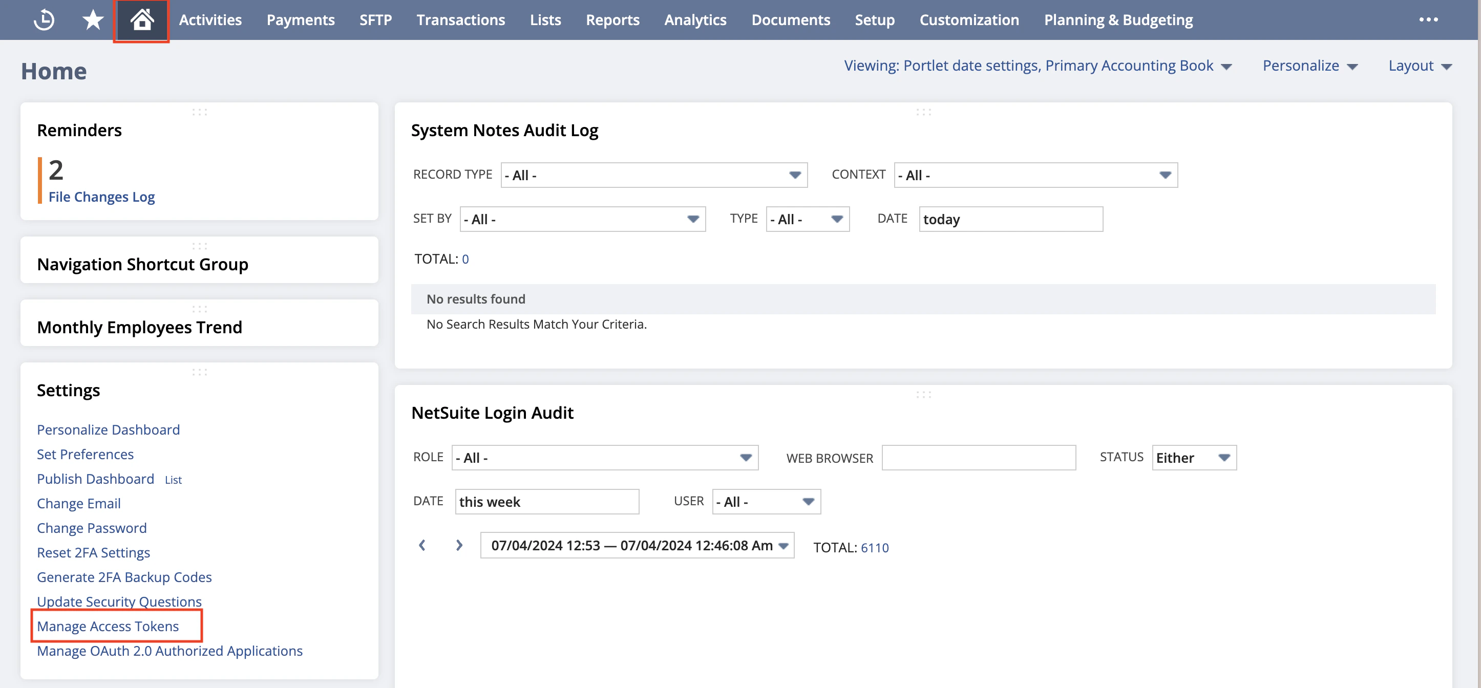 - Navigate to Setup > Integration > Manage Access Tokens