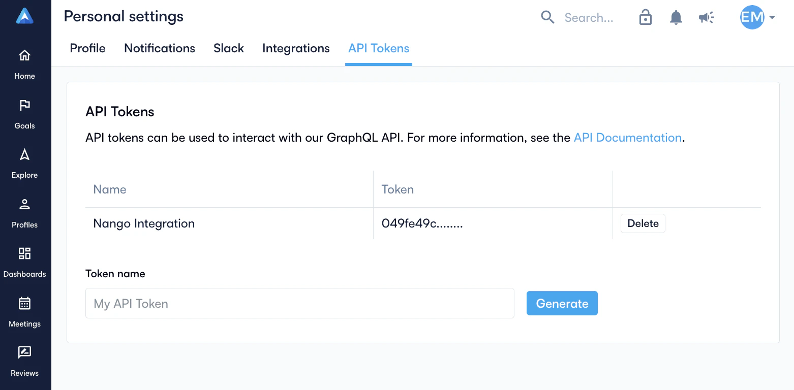 - Give your token a descriptive name (e.g., “Nango Integration”)