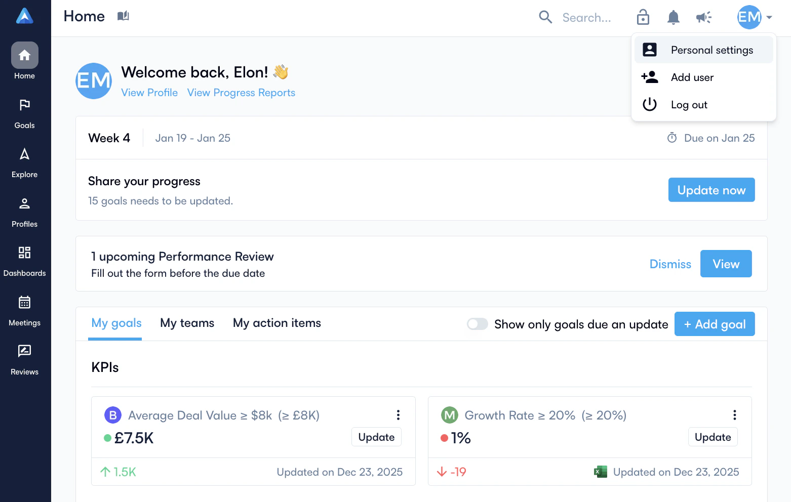 - Access to Personal Settings in Perdoo