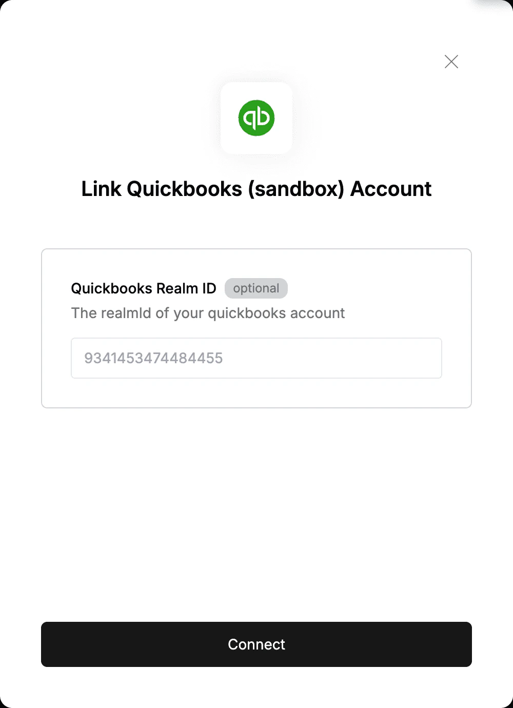 To authenticate with Quickbooks (Sandbox), you need:- Realm ID - This is an ID that identifies an individual QuickBooks (Sandbox) Online company.