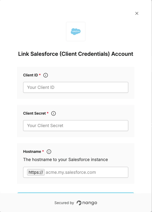 1. In the Nango Connect UI or dashboard, select the Salesforce (Client Credentials) integration.
