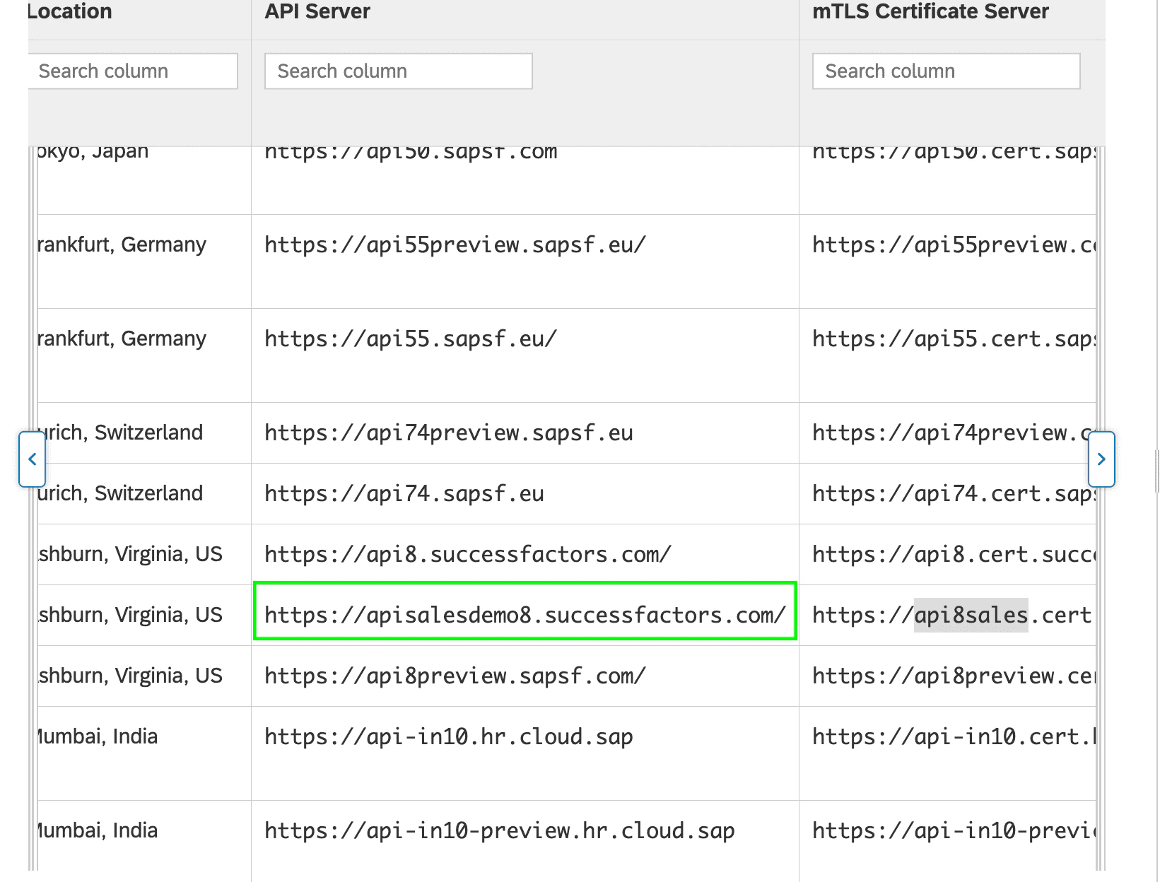 - For example, if your domain was https://salesdemo4.successfactors.com, search for salesdemo4.
