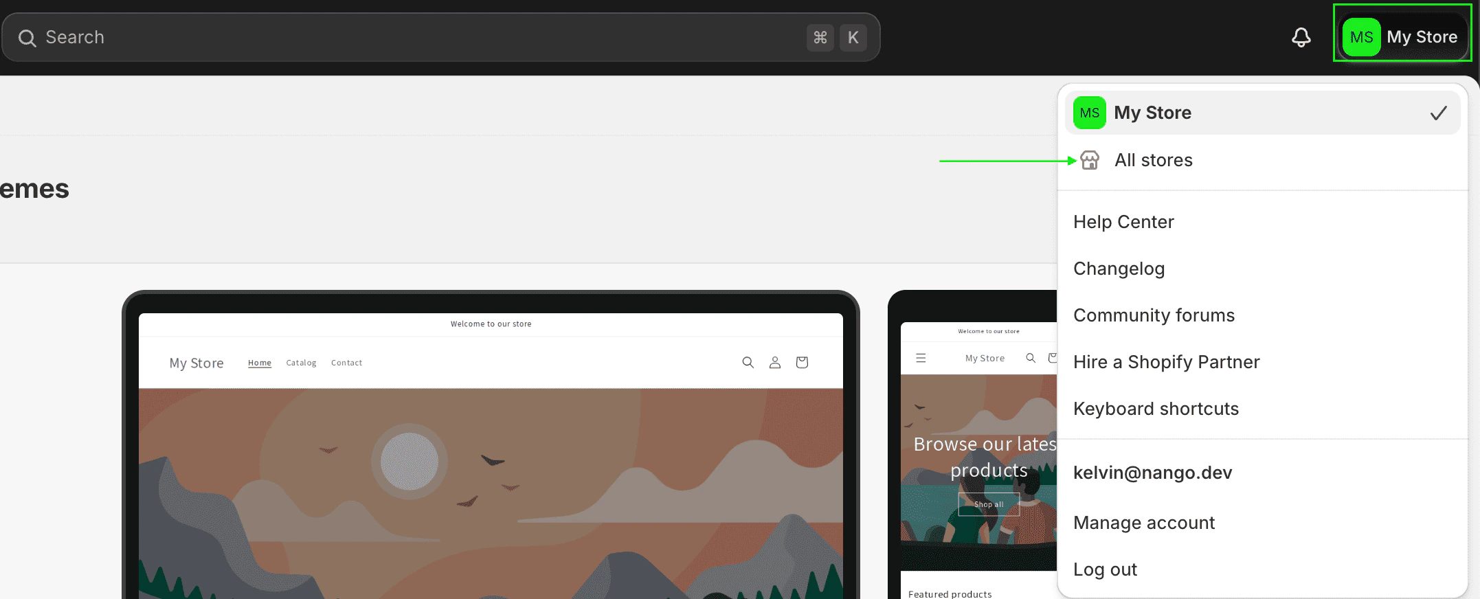 3. You can also click on your profile in the top right corner, then select All Stores to view the list of stores associated with your account.