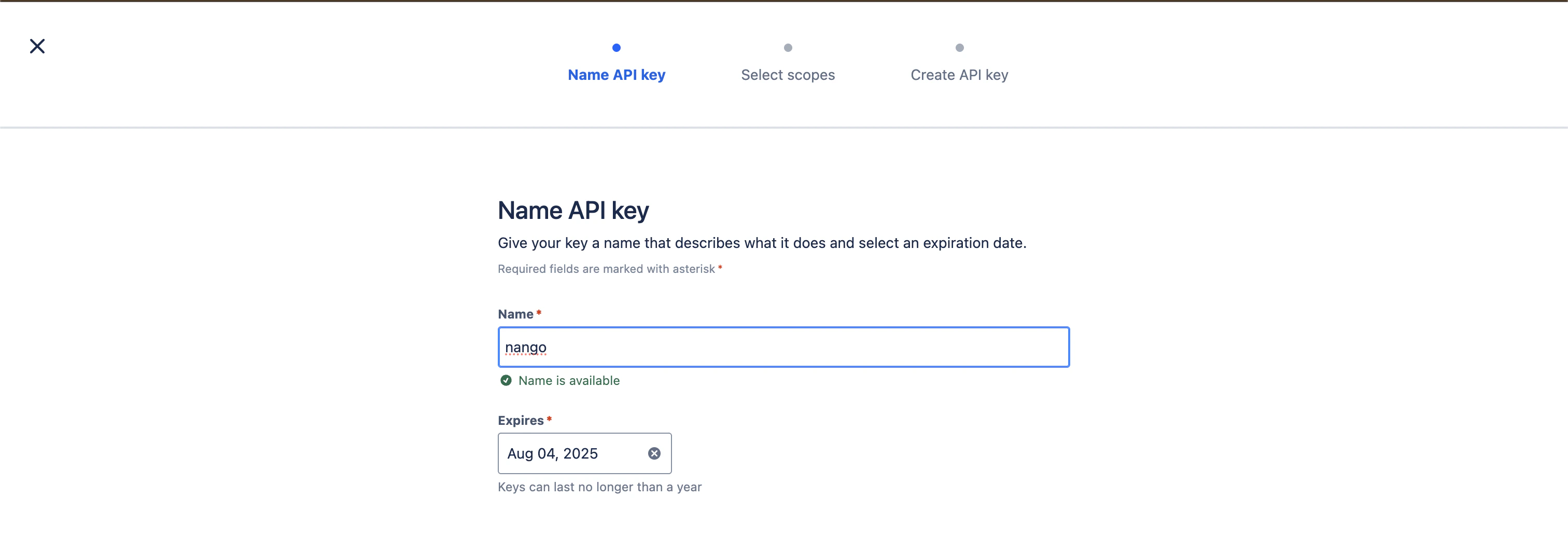 - To create a scoped key: Click API keys with scopes, then click Next.