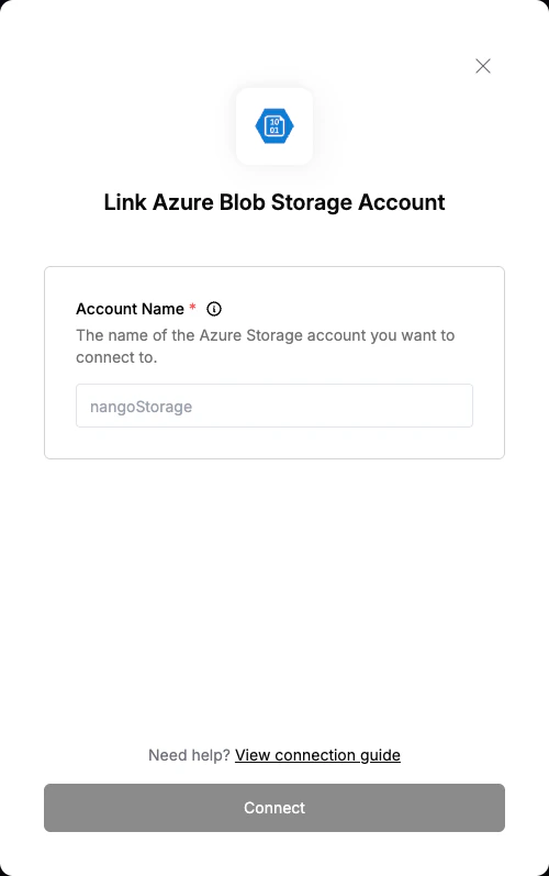 To authenticate with Azure Blob Storage, you need:- Account Name - The Account name of the storage account you want to connect to.