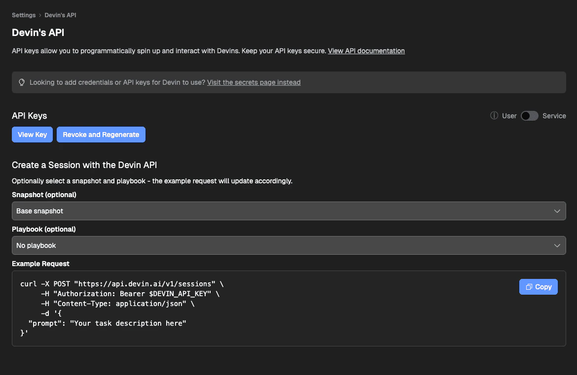 This guide will walk you through obtaining your API Key within Devin.