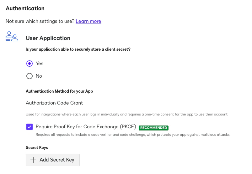 integration keyis actually the ‘client ID’. Also, you’ll need to add a ‘secret key’ when creating your app.