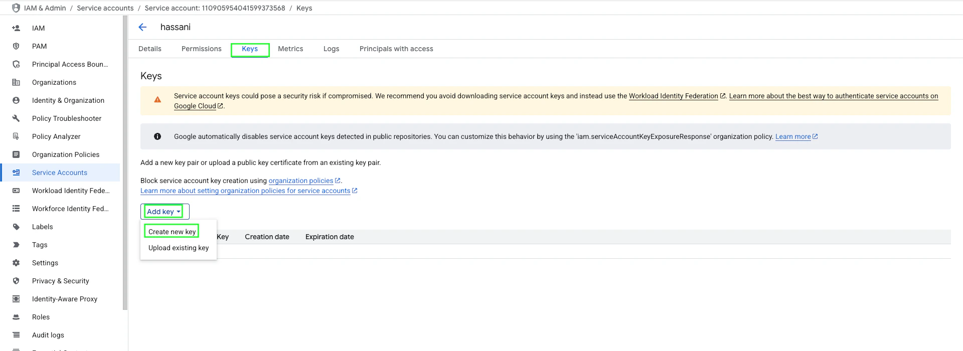 Step 2: Generate a Service Account Key