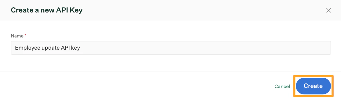 2. Enter a descriptive name for your API key, and click Create.