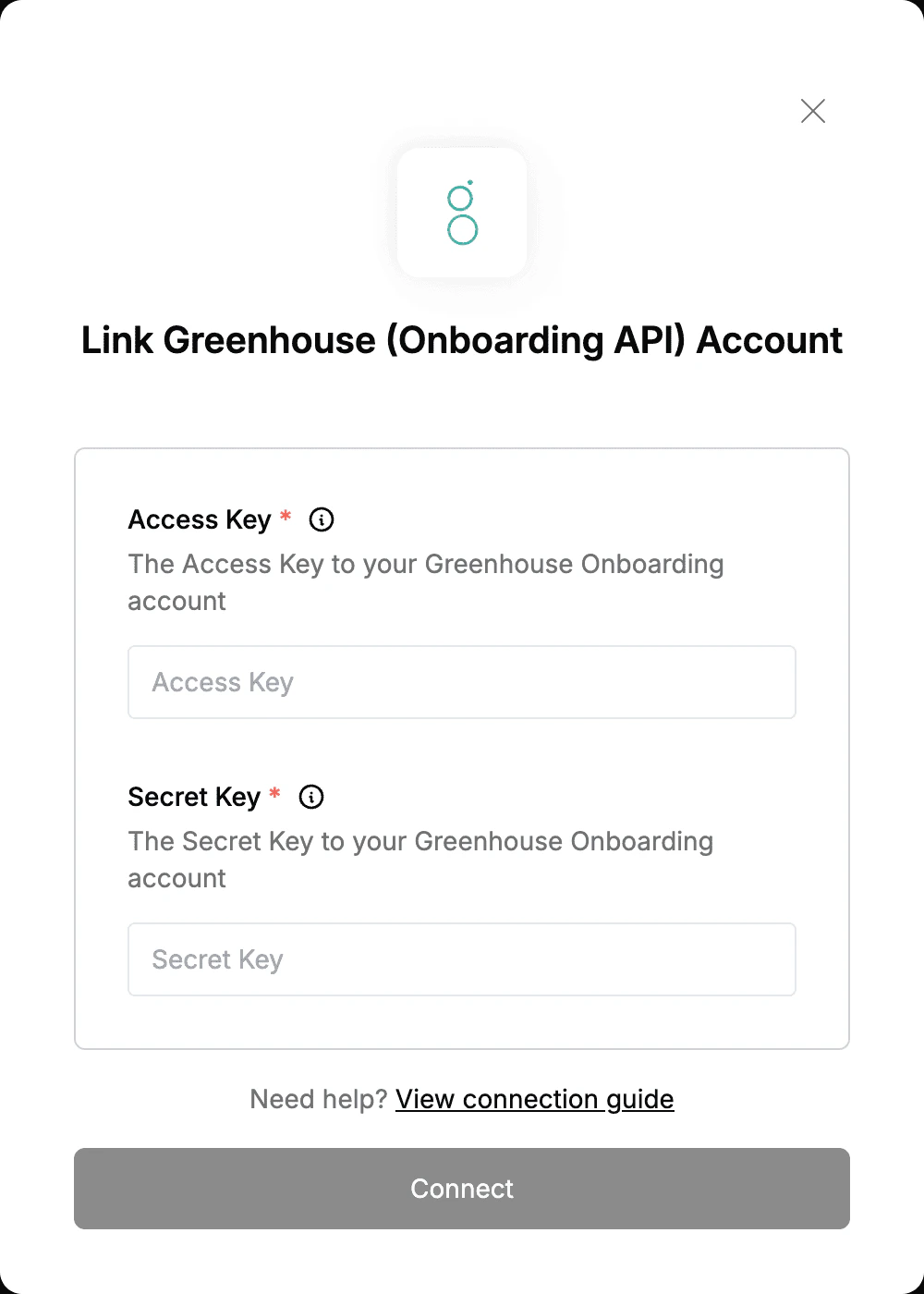 1. Access Key - Your Greenhouse (Onboarding) generated Access Key.
