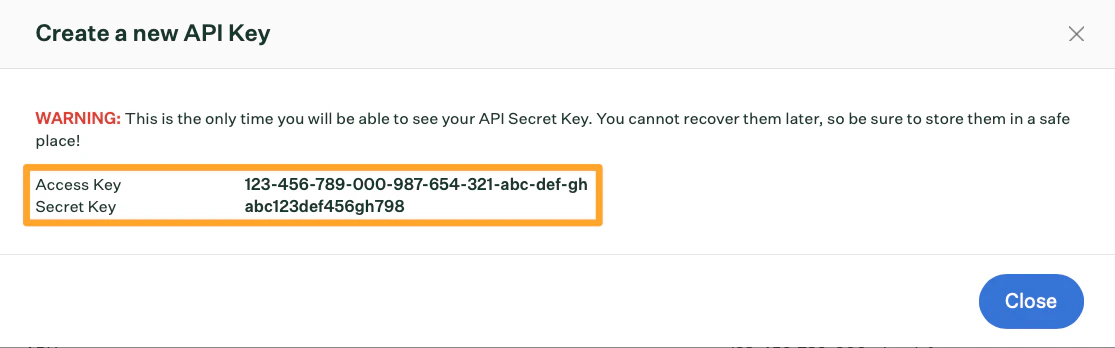 Once you have your Access Key and Secret Key: