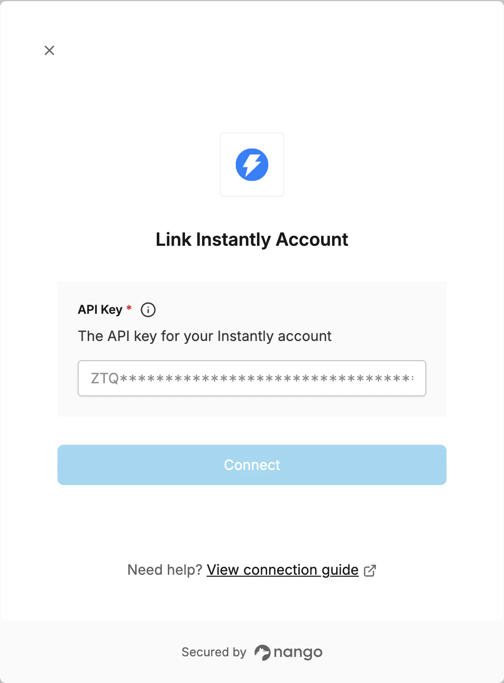 To authenticate with Instantly, you need:- API Key - A key that grants Nango permission to interact with Instantly’s API resources and services.