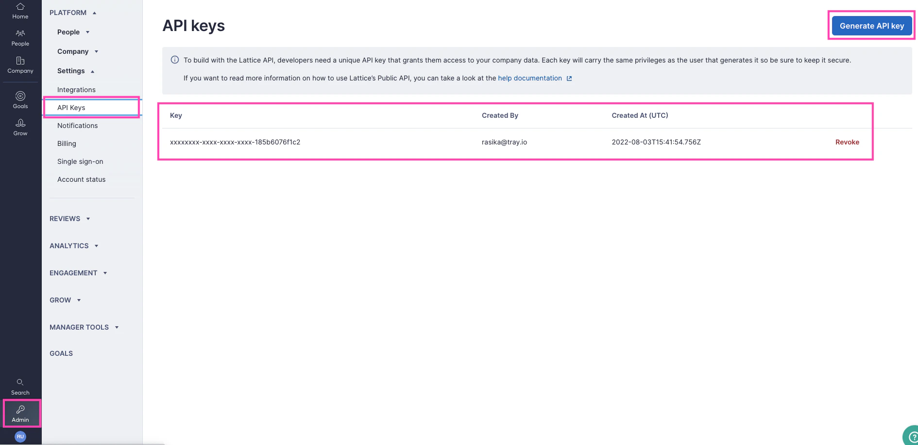 Step 1: How to Generate Lattice API Keys for Public and SCIM APIs
