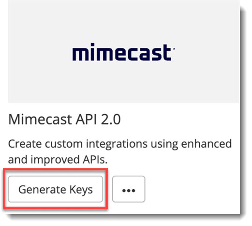 - Log in to your Mimecast Administration Console and navigate to Administration > Services > Cloud Gateway > API and Platform Integrations > API 2.0 Applications.