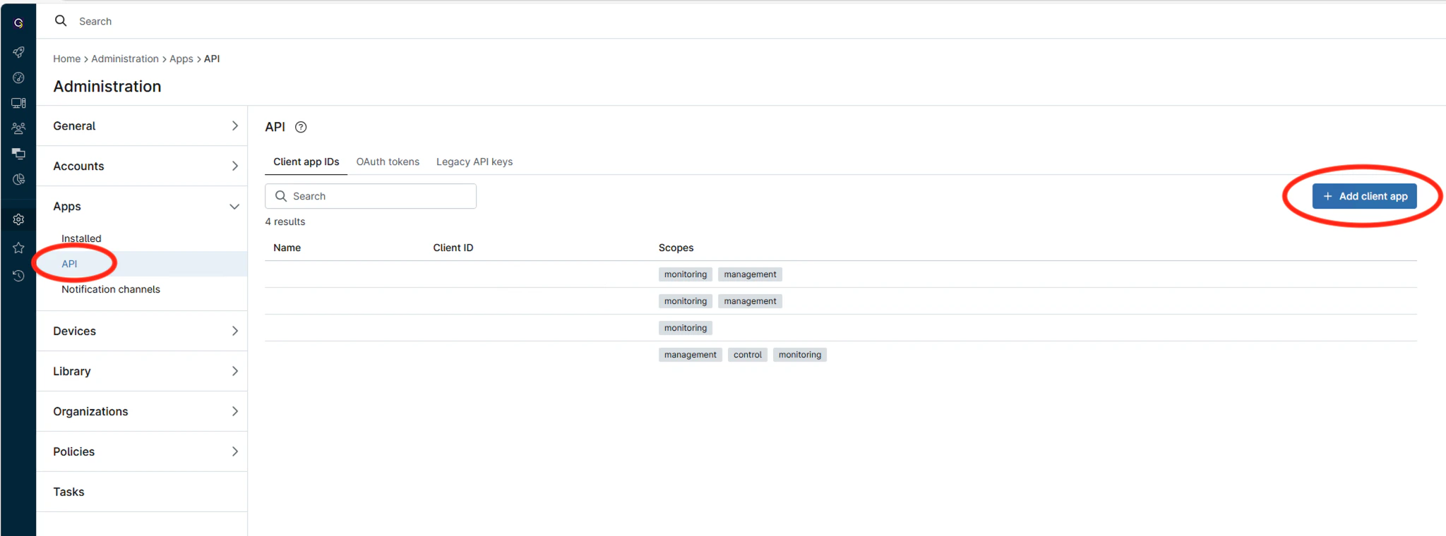 https://app.ninjarmm.com. - Navigate to Administration > Apps > API.