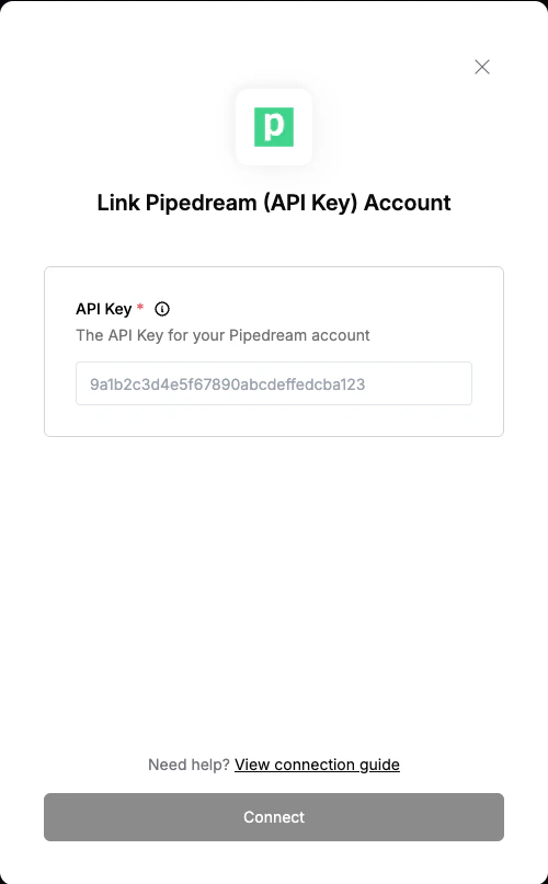 Once you have your API Key:- Open the form where you need to authenticate with Pipedream (API Key).