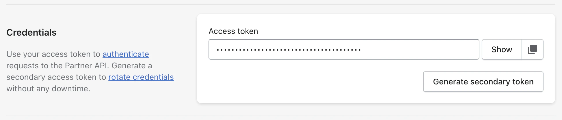 1. Once created, you’ll see your Partner API Client Access Token - copy this as you’ll need it for the next step