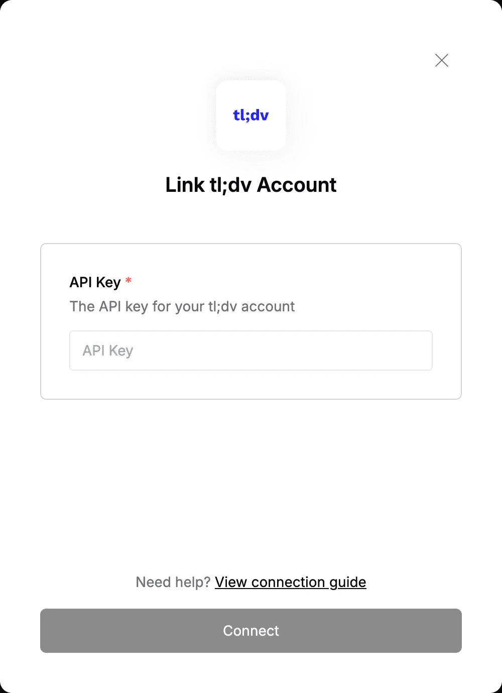 Once you have your API Key:- Open the form where you need to authenticate with tl;dv.