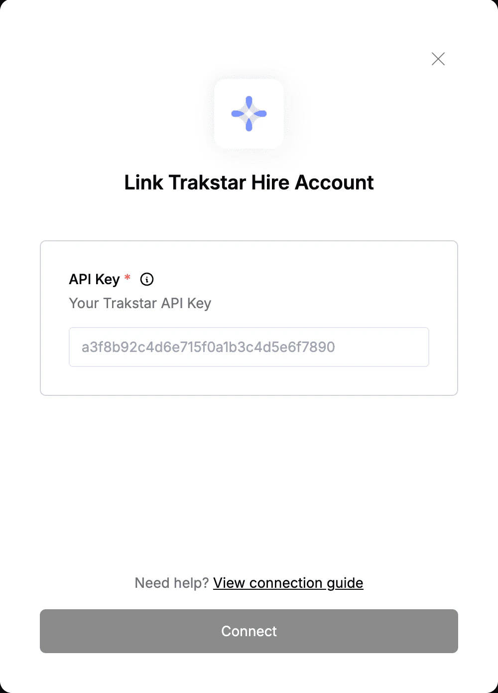 1. API Key - A key that grants secure access to the API, enabling authorized applications to interact with Trakstar Hire resources and services.