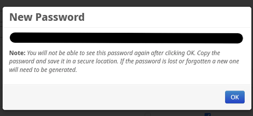 - A new password will be generated for the account