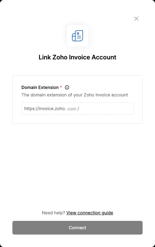 To authenticate with Zoho Invoice, you need:- Domain Extension - This extension indicates the data center where your account is hosted.